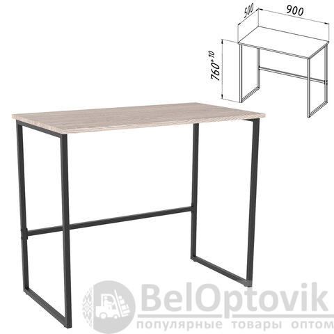 Стол BRABIX "SMART CD-020", 900х500х770 мм, ЛОФТ, металл/ЛДСП ясень шимо светлый, каркас черный, 641949