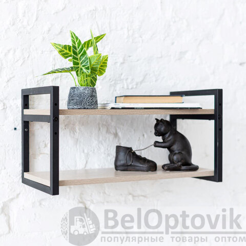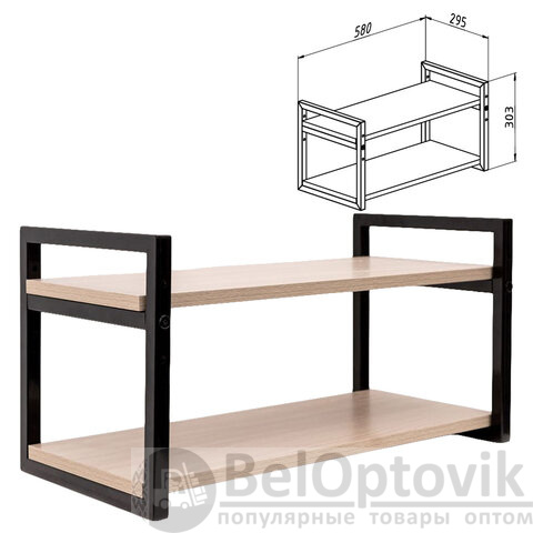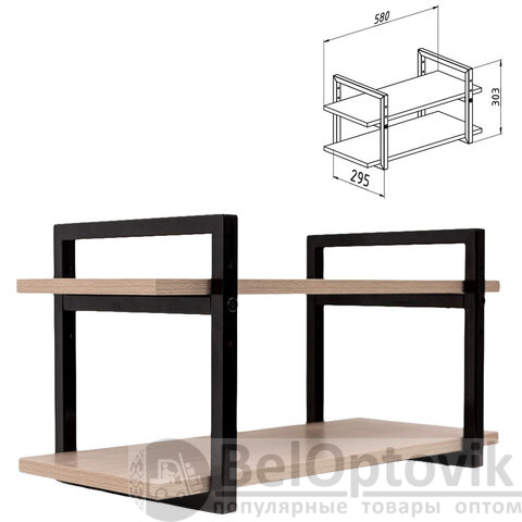 Полка BRABIX "SMART WS-002", 580х290х300 мм, ЛОФТ, 2 полки, металл/ЛДСП ясень шимо светлый, 641951