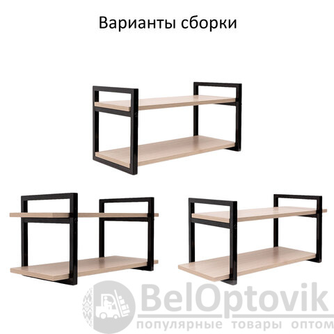 Конструкция полки позволяет менять расстояние между боковинами (3 варианта).
