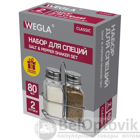 Набор для специй 2х80 мл, CLASSIC, солонка + перечница на подставке, стекло/сталь, WEGLA (ВЕГЛА), 700227
