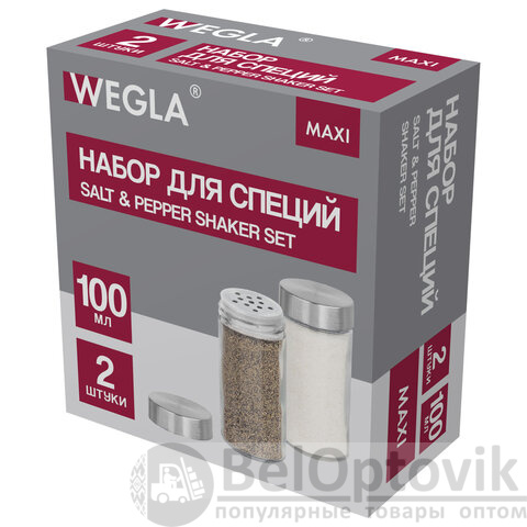 Набор для специй 2х100 мл, MAXI, солонка + перечница, стекло/сталь, круглые, WEGLA (ВЕГЛА), 700230