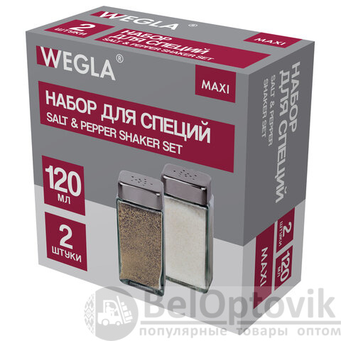 Набор для специй 2х120 мл, MAXI, солонка + перечница, стекло/сталь, квадратные, WEGLA (ВЕГЛА), 700231