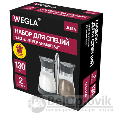 Набор для специй 2х130 мл, ULTRA, подставка + солонка + перечница, отверстия S/P, WEGLA (ВЕГЛА), 700233