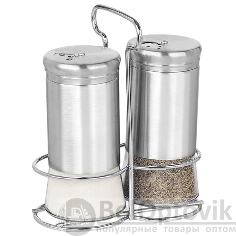Набор для специй WEGLA представляет собой набор из двух солонок-перечниц, предназначенный для удобного хранения и дозированной подачи сыпучих продуктов, таких как соль, перец или иные специи, а также для сервировки стола. В комплект входит устойчивая металлическая подставка, которая гарантирует порядок и компактное размещение набора для специй на поверхности. Размер одной солонки составляет 12,5х5,8x5,5 см.