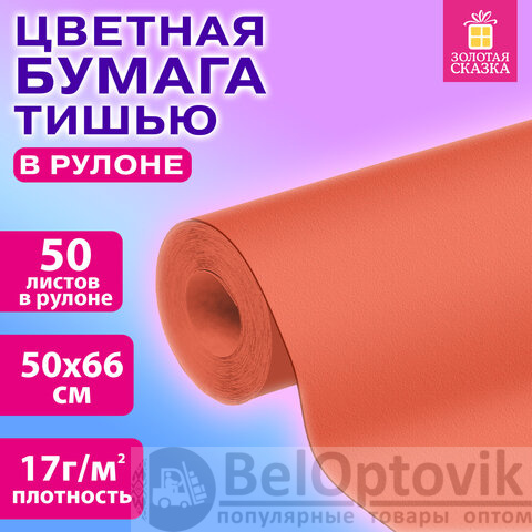 Цветная бумага ТИШЬЮ 17 г/м2, 50х66 см, 50 листов в рулоне, коралловая, ЗОЛОТАЯ СКАЗКА, 116501