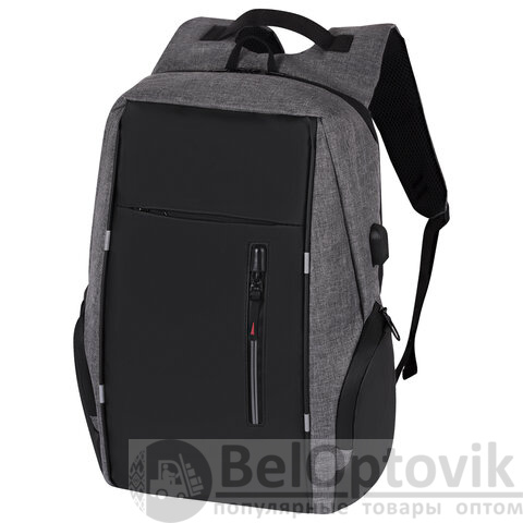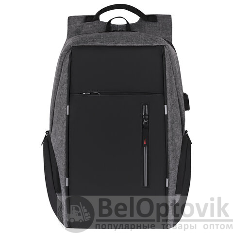 Выполнен из серого полиэстера с чёрной водоотталкивающей вставкой вдоль всей передней панели, а также на боковых карманах, что гарантированно обеспечивает защиту техники и личных вещей от дождя и влаги.