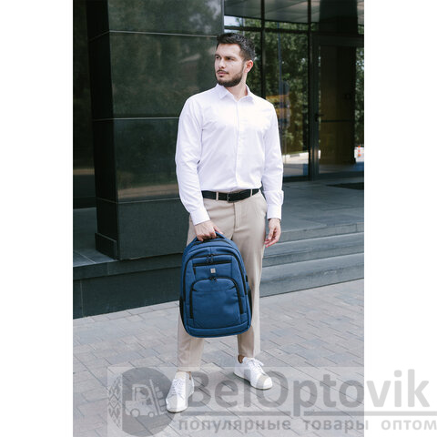 Его габариты 46x31x19 см и вес около 980 грамм обеспечивают вместительность без лишней тяжести, а синий цвет вписывается в любой образ. Материал изделия выполнен из качественного водостойкого полиэстера, что позволяет защитить вещи от влаги и загрязнений.