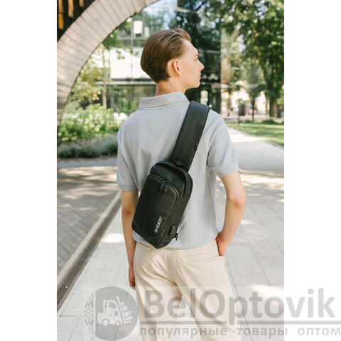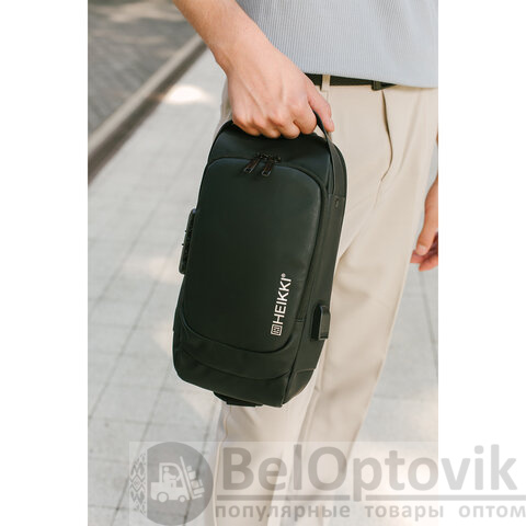 Рюкзак однолямочный HEIKKI FEATURE (ХЕЙКИ), кодовый замок, USB-порт, черный, 32x16x6 см, 273900