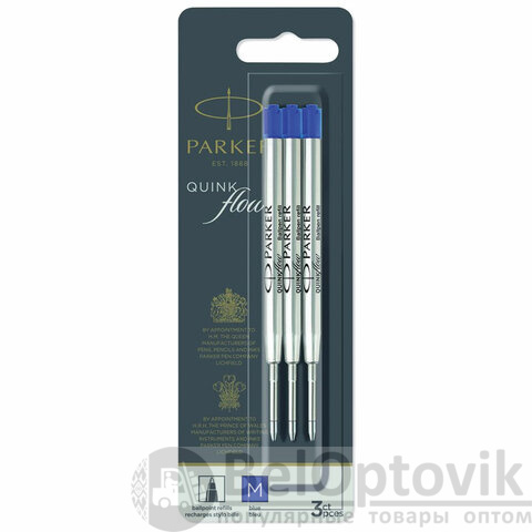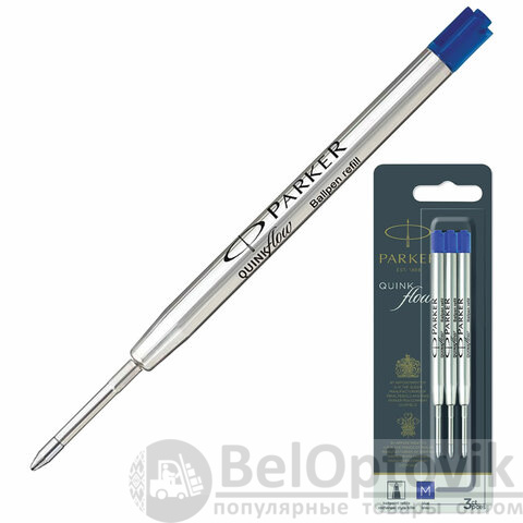 Стержни подходят как для автоматических ручек, так и ручек с поворотным механизмом торговой марки PARKER. Стержни имеют металлический корпус, длина которого составляет 98 мм. Диаметр пишущего узла 1 мм создает линию письма, равную 0,8 мм. Имеют стандартный наконечник. Цвет чернил – синий. Количество стержней в комплекте – 3 шт. Поставляются в блистере.