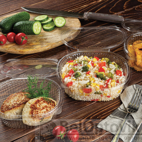 Одноразовый контейнер овальный 500 мл, С КРЫШКОЙ ЮП-РКС, КОМПЛЕКТ 360 шт., прозрачный ПЭТ, ЮПЛАСТ, ЮУПМ6131