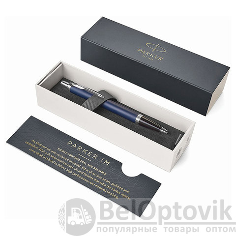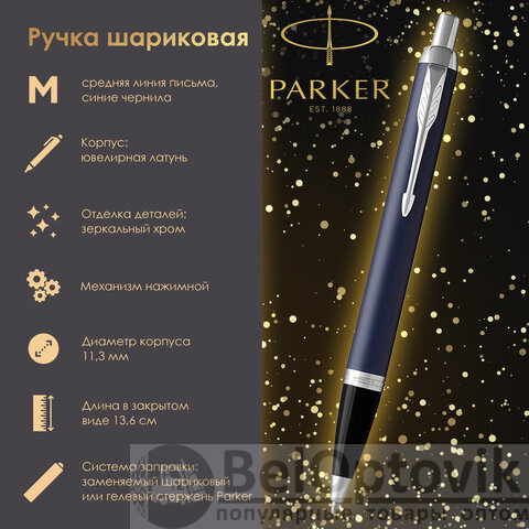 Ручка шариковая PARKER "IM Core Matte Blue CT", корпус темно-синий лак, хромированные детали, синяя, 1931668