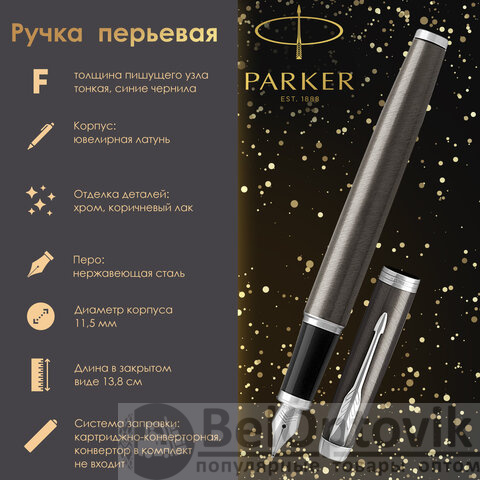 Ручка перьевая PARKER "IM Core Dark Espresso CT", корпус кофейный лак, хромированные детали, синяя, 1931650