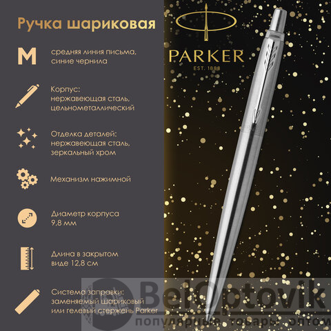 Набор PARKER "Jotter Stainless Steel CT": шариковая ручка синяя и механический карандаш, 2093256