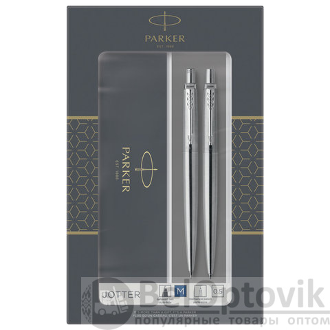 Подарочный набор по привлекательной цене Parker, состоящий из классической шариковой ручки и механического карандаша этой же серии. Набор идеально подойдет в качестве небольшого подарка или знака внимания. Поставляется в стильной подарочной упаковке.