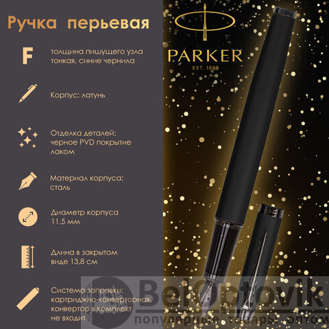 В комплекте: картридж, подарочная упаковка. Возможно использование со стандартными чернильными картриджами (75х6 мм) и мини-картриджем (35х6 мм) PARKER, а также стандартным конвертером PARKER для заправки чернилами из флакона.