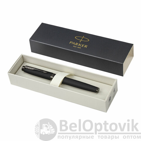 Ручка перьевая PARKER "IM Achromatic Black BT", черный матовый, нержавеющая сталь, синяя, 2127741