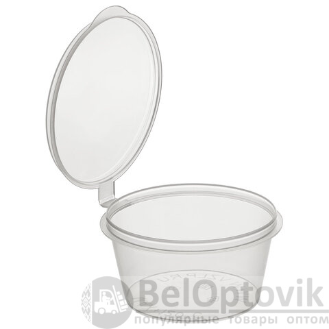 Порционный соусник прозрачный, с верхним закрытием имеет круглую форму. Верхнее закрытие соуса обеспечивает герметичность и сохранность продукта. Прозрачность позволяет видеть содержимое и контролировать его количество. Соусник произведен из качественного полипропилена (PP), прочного и устойчивого к жирам и кислотам, рассчитанного на высокие температуры (до +120 °C). Объем (вместимость) – 50 мл, диаметр – 53 мм, высота – 30 мм.