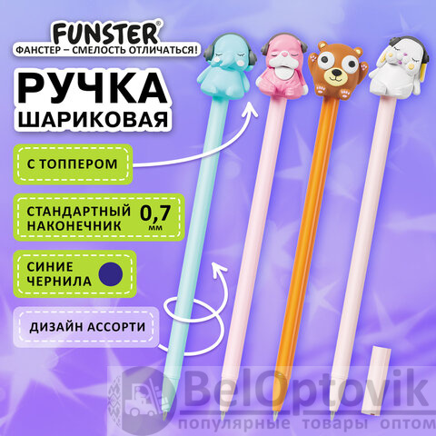 Ручка с топпером шариковая масляная FUNSTER "TOPPER MIX" позволяет не просто вести записи, а выражать свой стиль в каждом написанном слове! Спешите оформить заказ прямо сейчас и получить положительные эмоции вместе с ручками FUNSTER!