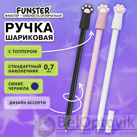 Ручка с топпером шариковая масляная FUNSTER "CAT PAWS" позволяет не просто вести записи, а выражать свой стиль в каждом написанном слове! Спешите оформить заказ прямо сейчас и получить положительные эмоции вместе с ручками FUNSTER!