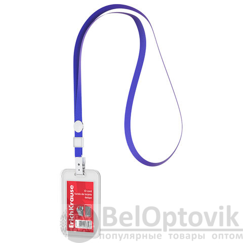 Бейдж вертикальный ERICH KRAUSE (54х85 мм), корпус прозрачный, цвет ленты синий, 63728