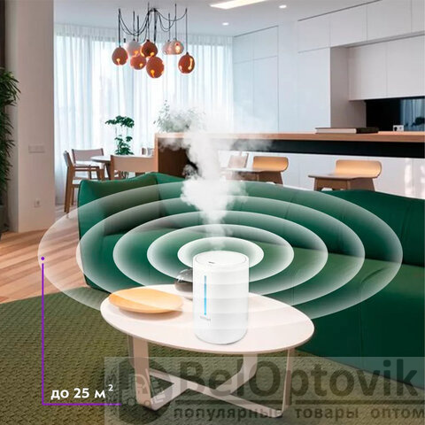 Управление простое и интуитивное: кнопки "Вкл/выкл", "Таймер" (от 2 до 8 часов) и "Подсветка" позволяют легко настроить работу под ваши нужды. Резервуар легко наполняется – достаточно снять крышку, а при пустом баке устройство автоматически переходит в режим ожидания.