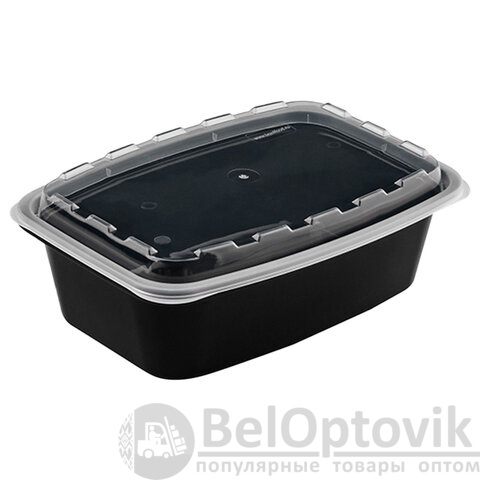 Контейнер одноразовый 1000 мл, С КРЫШКОЙ, 211х146 мм, черный/прозрачный, ПП, ВЗЛП, 1266Ч