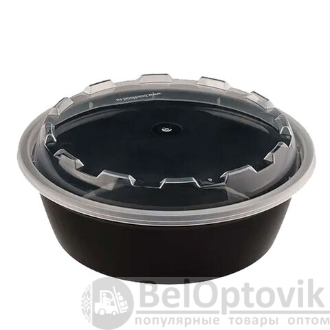 Контейнер одноразовый 530 мл, С КРЫШКОЙ, круглый, диаметр 152 мм, черный/прозрачный, ПП, ВЗЛП, 1264Ч