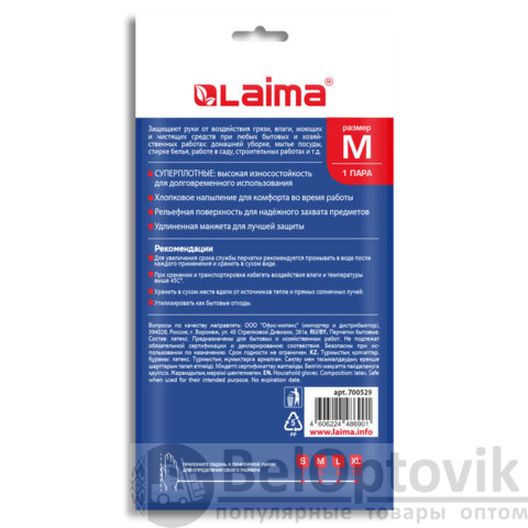 Универсальные супер плотные латексные перчатки LAIMA защищают руки от воздействия грязи, влаги, моющих и чистящих средств при любых бытовых и хозяйственных работах: мытьё посуды, стирка белья, уборка, садоводческая работа и т.д.