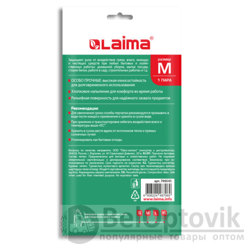Универсальные супер плотные латексные перчатки LAIMA защищают руки от воздействия грязи, влаги, моющих и чистящих средств при любых бытовых и хозяйственных работах: мытьё посуды, стирка белья, уборка, садоводческая работа и т.д.