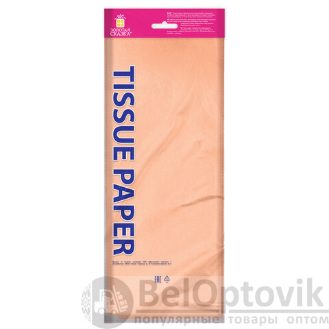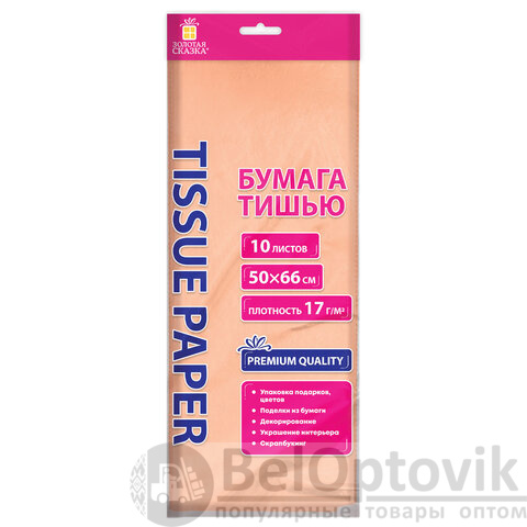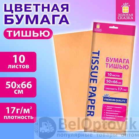 Цветная бумага ТИШЬЮ 17 г/м2, 50х66 см, 10 листов, персиковый цвет, ЗОЛОТАЯ СКАЗКА, 116481