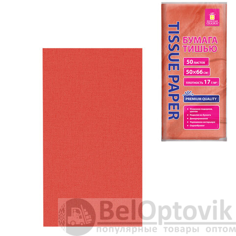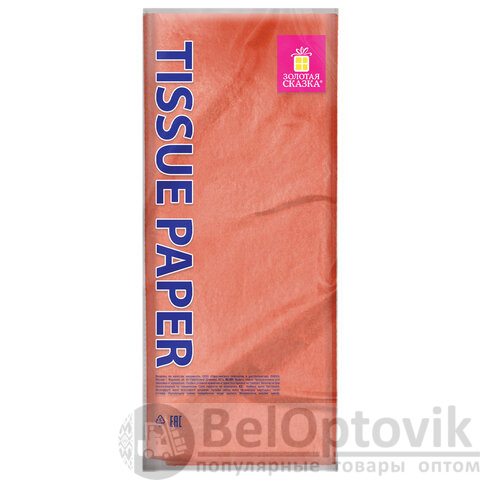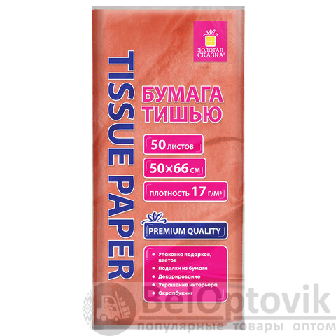 Цветная бумага ТИШЬЮ 17 г/м2, 50х66 см, 50 листов, коралловый цвет, ЗОЛОТАЯ СКАЗКА, 116485