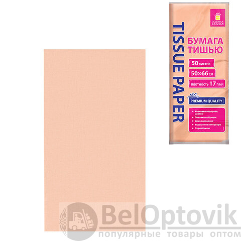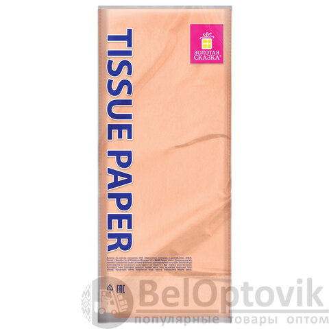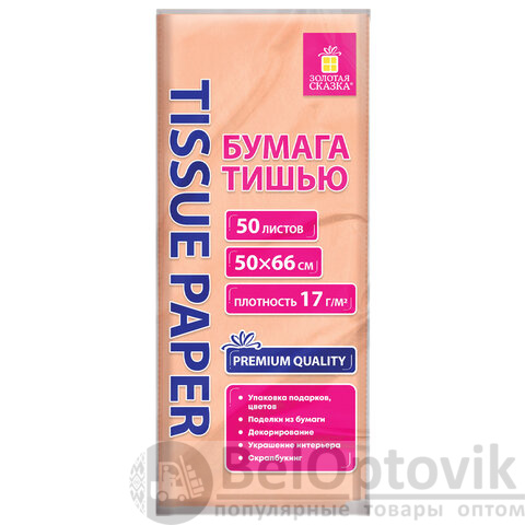 Цветная бумага ТИШЬЮ 17 г/м2, 50х66 см, 50 листов, персиковый цвет, ЗОЛОТАЯ СКАЗКА, 116489