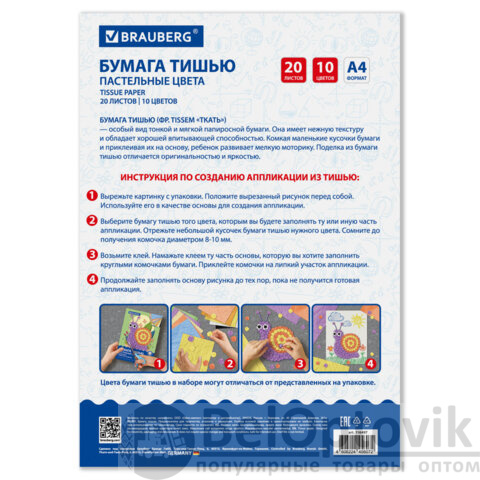 Данный набор бумаги тишью предназначена для детского творчества. Может использоваться детьми от 3 лет для развития моторики и воображения.