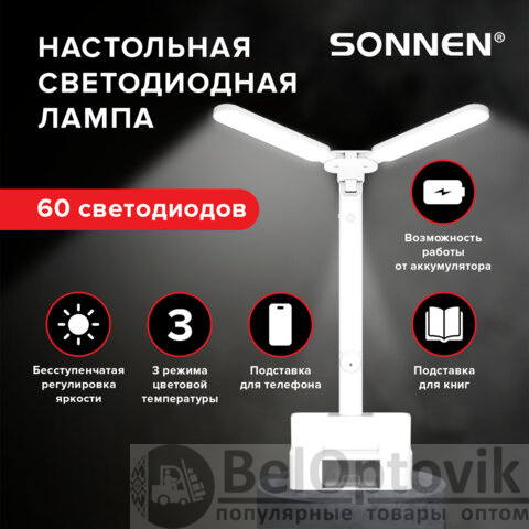 Настольная лампа / светильник беспроводная SONNEN PT-201, органайзер, USB, LED, 5 Вт, 3 режима, белый, 238781