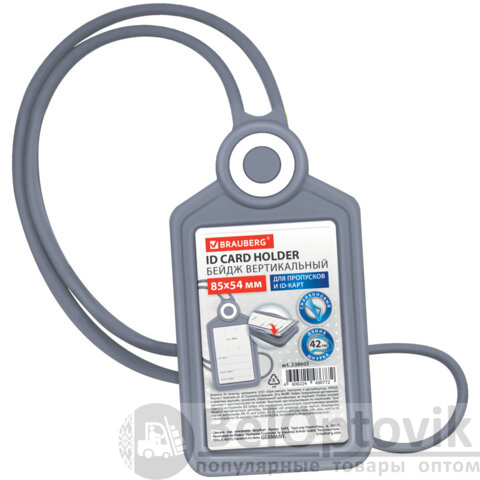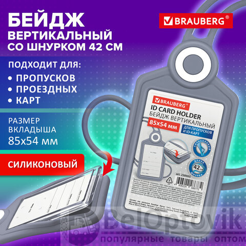 Вертикальный силиконовый бейдж BRAUBERG для хранения пропусков и карточек сотрудников, ID-карт, проездных и банковских карт.