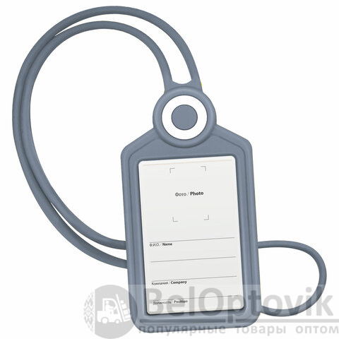 Бейдж вертикальный для пропуска и ID-карт, СИЛИКОНОВЫЙ, 85х54 мм, шнурок 42 см, серый, BRAUBERG, 238905