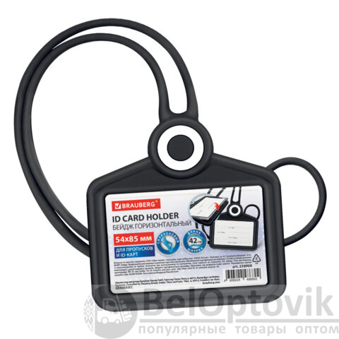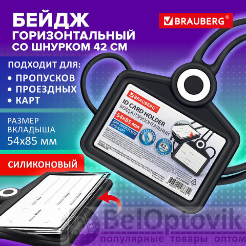 Горизонтальный силиконовый бейдж BRAUBERG для хранения пропусков и карточек сотрудников, ID-карт, проездных и банковских карт.