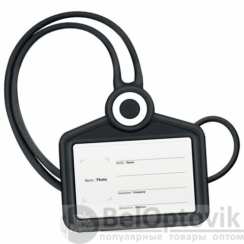 Бейдж горизонтальный для пропуска и ID-карт, СИЛИКОНОВЫЙ, 54х85 мм, шнурок 42 см, черный, BRAUBERG, 238908
