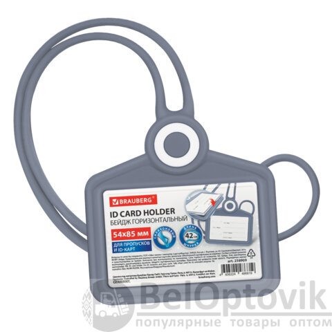 Горизонтальный силиконовый бейдж BRAUBERG для хранения пропусков и карточек сотрудников, ID-карт, проездных и банковских карт.