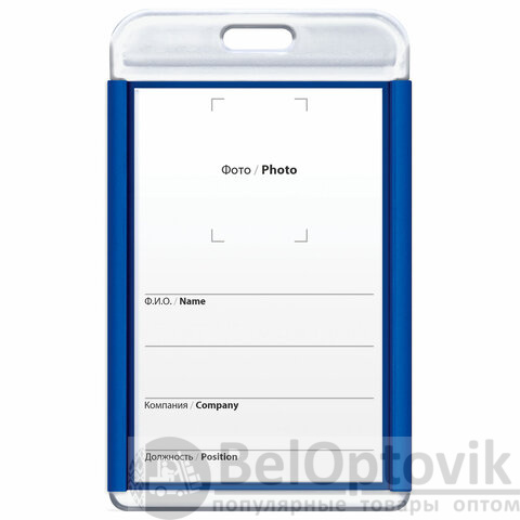Бейдж вертикальный для пропуска и ID-карт, 85х54 мм, синий, BRAUBERG ULTRA, 238910