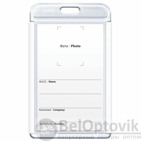 Бейдж подходит для крепления на ленте, держателе с рулеткой. Изготовлен из высокопрочного акрила и пластика, гарантирующего его долгий срок службы. Обладает повышенной вместимостью: влезет 2 и более карт. Идеально подойдёт для чувствительных к механическим повреждениям магнитных карт и пропусков. Размер вкладыша – 85х54 мм. Вкладыш оснащен местом под персонализацию: фото, ФИО, наименование компании и должность.