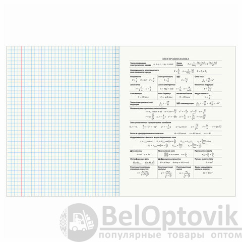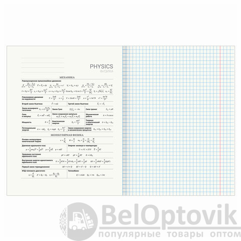 Тетрадь по физике формата А5 (165х202 мм) содержит 48 листов, изготовленных из высококачественной офсетной бумаги плотностью 60 г/м2 и белизной 100%.