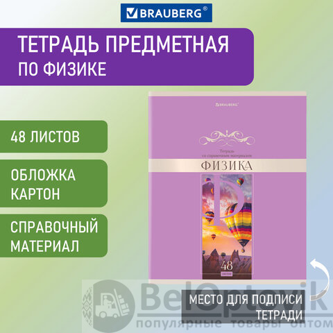 Тетрадь предметная "DELIGHT" 48 л., обложка картон, ФИЗИКА, клетка, BRAUBERG, 404578