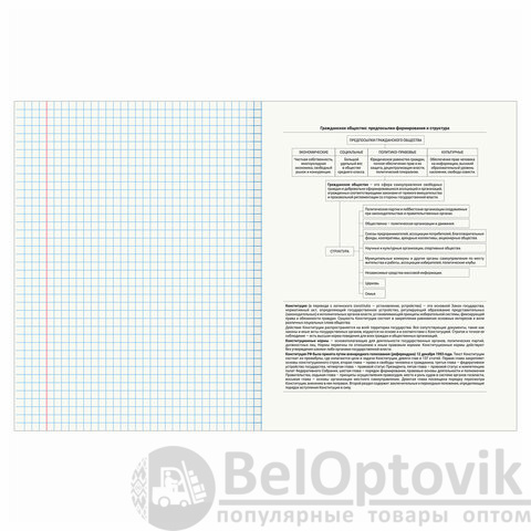 Тетрадь по обществознанию формата А5 (165х202 мм) содержит 48 листов, изготовленных из высококачественной офсетной бумаги плотностью 60 г/м2 и белизной 100%.