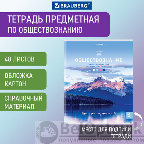 Тетрадь предметная "КЛАССИКА NATURE" 48 л., обложка картон, ОБЩЕСТВОЗНАНИЕ, клетка, BRAUBERG, 404581