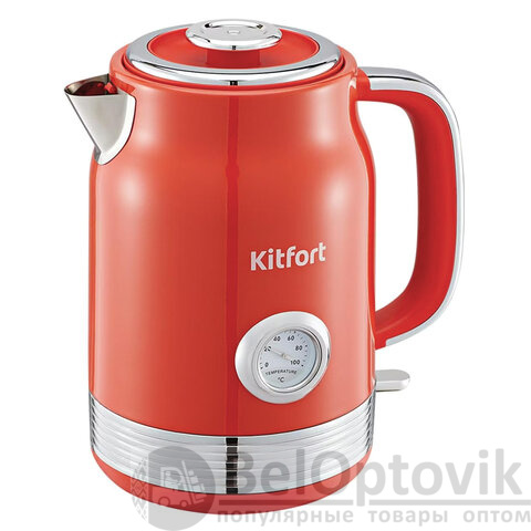 Чайник KITFORT КТ-6791, 1,7л, 2200Вт, закрытый нагревательный элемент, термометр, сталь, красный