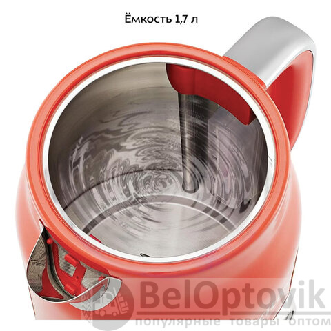 Яркий красный корпус из нержавеющей стали с термоустойчивыми пластиковыми элементами станет настоящим украшением интерьера, а мощность 2200 Вт обеспечивает быстрое кипячение до 1,7 литра воды всего за несколько минут.