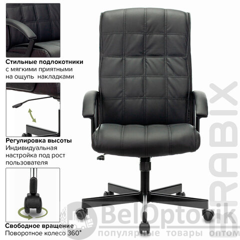Кресло офисное BRABIX "Quadro EX-524", компактная упаковка, экокожа, черное, 532104