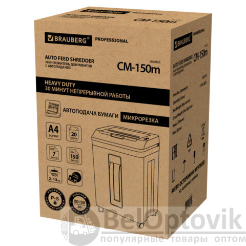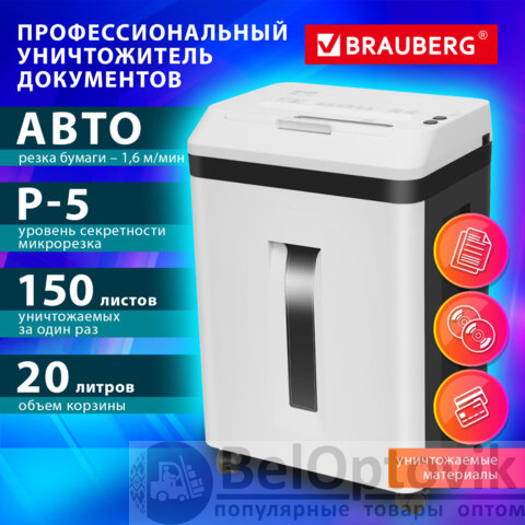 Уничтожитель (шредер) с автоподачей BRAUBERG PROFESSIONAL AUTO CM-150m, HeavyDuty, 5 уровень секретности, 2х13мм, корзина 20 литров, 533131