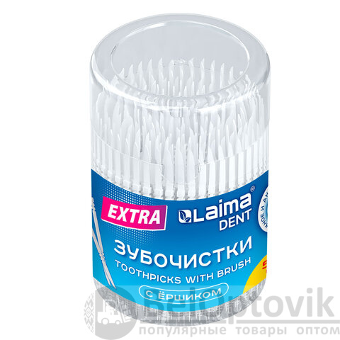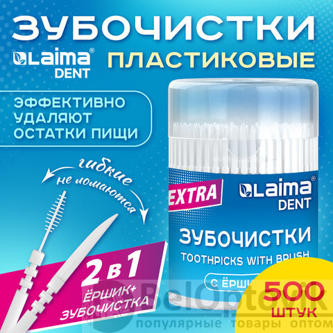 Зубочистки зубные, ёршики с щеточкой 500 шт., стакан, LAIMA DENT, 609401